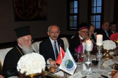 Genel Başkan Kemal Kılıçdaroğlu’nun konuklarıyla tek tek ilgilendiği Adile Sultan Sarayı’ndaki yemekli toplantıya, Fener Rum Patriği Bartholomeos, Türkiye Musevileri Hahambaşı İsak Haleva, Türkiye Ermenileri Patrik Genel Vekili Başpiskopos Aram Ateşyan, Türk Süryani Kadim Kilisesi Metropoliti Yusuf Çetin ve Türk Süryani Katolik Kilisesi Patrik Vekili Yusuf Sağ’ın da aralarında bulunduğu bazı ruhani liderler ile Rum Ortodoks, Musevi, Ermeni Havari, Süryani Kadim, Süryani Katolik ve Ermeni Katolik cemaatlerinden temsilciler katıldı.