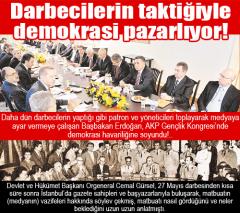 Daha dün darbecilerin yaptığı gibi patron ve yöneticileri toplayarak medyaya ayar vermeye çalışan Başbakan Erdoğan, AKP Gençlik Kongresi’nde demokrasi havariliğine soyundu!