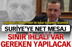 Başbakan Recep Tayyip Erdoğan Pekin'de basın toplantısı düzenledi... Başbakan Recep Tayyip Erdoğan, Suriye'deki olaylara ilişkin Türkiye'nin yapması gerekenin önemli olduğunu belirterek, ''Bir sınır ihlalinin olması halinde Türkiye ne yapmalıdır?