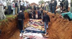 Suriye’deki direnisçilerin dünya basınına yolladığı bu resim, 5 Nisan’da sınırın hemen ötesinde İdlib yakınlarındaki Tarftnaz köyündeki toplu cenaze töreninden.