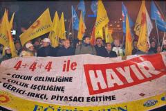 4+4+4 eğitim modeli ile 4688 sayılı Kamu Görevlileri Sendikalarında Değişiklik Yapılmasına Dair Kanun Tasarısı'nı protesto etmek için yurdun çeşitli illerinden gelerek Ankara'da toplanan KESK üyelerinin eylemi sürüyor.