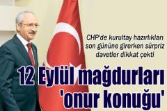 CHP'de kurultay hazırlıkları son gününe girerken sürpriz davetler dikkat çekti. Kılıçdaroğlu'nun talimatıyla 12 Eylül mağdurları, faili meçhul cinayetler ve Sivas katliamında hayatını kaybedenlerin aileleri kurultaya 'onur konuğu' olarak katılacak.