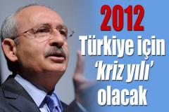 Türküye’nin çok önemli bir süreçten geçtiğini belirterek, hükümete yüklenen Kılıçdaroğlu, 2012 yılının Türkiye’nin için bir kriz yılı olacağı, buna herkesin hazırlıklı olması gerektiği uyarısında bulundu. Bir daralmanın ve bunun doğuracağı işsizliğin halka çok iyi anlatılması gerektiğini ifade eden Kılıçdaroğlu, “9-10 yıllık bir iktidar mazeret üretemez, yok öyle mazeret üretme lüksü. Gerekçe artık yok, iyi yönetilmediğini artık bütün dünya biliyor. Bunu halka en ücra köşeye kadar hepimizin anlatma yükümlülüğü vardır” dedi. Kılıçdaroğlu, işsizliğin temel bir sorun olarak devam ettiğini belirtirken, 2012’de işsizliğin çok daha artacağı uyarısında bulunarak, “Bunu şimdiden söylüyoruz, tanık olacağız buna” dedi.