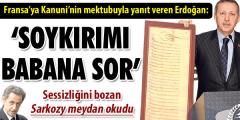 Başbakan Erdoğan, inkar yasasını meclisten geçiren Fransa’ya dün de ateş püskürdü. Fransa’ya Cezayir’de yaptığı katliamları hatırlatan Erdoğan, “Eğer Fransa Cumhurbaşkanı Sarkozy, bu soykırımı bilmiyorsa, gitsin babası Paul Sarkozy’ye sorsun. Babası 1940’lardaki Fransız Lejyonu’nda askerlik yaptı. Eminim ki oğluna söyleyecek çok sözü vardır” dedi...