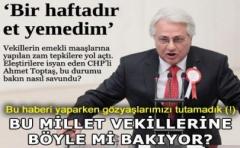 Diğer grupların emekli maaşlarıyla, emekli milletvekillerinin maaşlarının karşılaştırılmasının yanlış olduğunu savunan Toptaş, \'Bizim yaşam standardımızla ilgili konuyu emekliyle, işçiyle öğretmenle karşılaştırarak bir sonuca varmak haksızlıktır. 5 sene futbol oynamış, hafta sonu bir futbol kritiğine çıkan, ’Hakem düdüğü yanlış çaldı, Mehmet kafa atsaydı, Ali çelme takmasaydı’ diyen bir adam ayda 125 bin lira alıyor. Bununla haksız kazancı karşılaştırmak varken, bu ülkenin kaderiyle ilgili karar alanları karşılaştırmak ne kadar doğrudur\' diye konuştu.