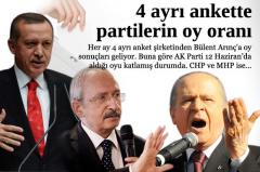 Başbakan Yardımcısı Bülent Arınç, partisinin 4 ayrı anket şirketinden gelen sonuçlara göre 12 Haziran seçimlerinde alınan oyların çok üstüne çıktğını söyledi.