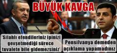 Demirtaş ayrıca, \' İkiyüzlü ve riyakarsınız. Hakkınızı teslim etmek lazım. Bu konuda da başarılısınız. Bu taraftan yüzünüze bakanlar insan olduğunuzu söyler. Ama diğer yüzünüzü gören kirli yüzünüzü görür. Bazı Kürt kökenli kardeşlerin çıkarları yüzünden yanında durabilirler. Ama Kürt halkı senin yanında değil. O yüzden çıldırmış durumdasın. Daha çok çıldıracaksın.Cemaatin izni olmadan nefes alamayanlar bugün çıkmış bize hakaret etmeye çalışıyor. Bak Pensilvanya bir şey demeden açıklama bile yapamadınız. Bu konuları önce Amerika ve İsrail ile görüştünüz.\' dedi.