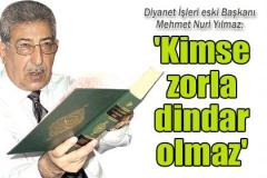 Diyanet İşleri eski Başkanı Mehmet Nuri Yılmaz, 'dindar nesil yetiştirme' tartışmalarına 'Dinde zorlama söz konusu olamaz. İsteyen dindar olur isteyen ateist olur' yorumunda bulundu.