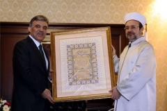 Diyanet İşleri Başkanı Mehmet Görmez'in kıldırdığı cuma namazının ardından Görmez'in makamına geçen Cumhurbaşkanı Gül, Diyanet İşleri Başkanlığı özel defterini imzaladı. Burada bir de konuşma yapan Gül, Diyanet İşleri Başkanlığı'nın Cumhuriyetin ilk kurumlarından birisi olduğunu söyledi.